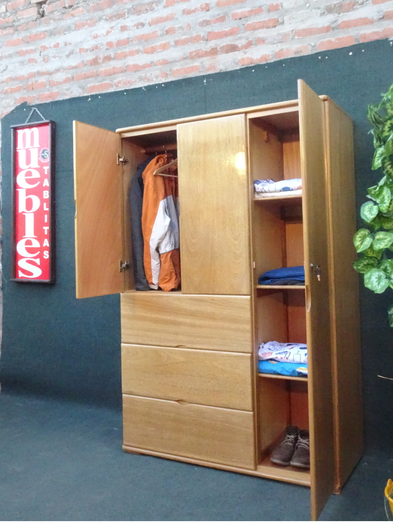 Ropero de 3 puertas, 3 cajones inferiores.